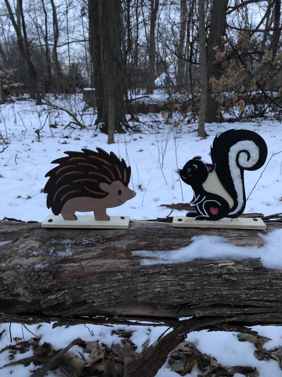 Thank you to my mom, who has helped me so much with her artistic expertise and helping get things ready, and my dad for helping secure things to stumps and logs all while trying to preserve the artistic details and keep them intact.